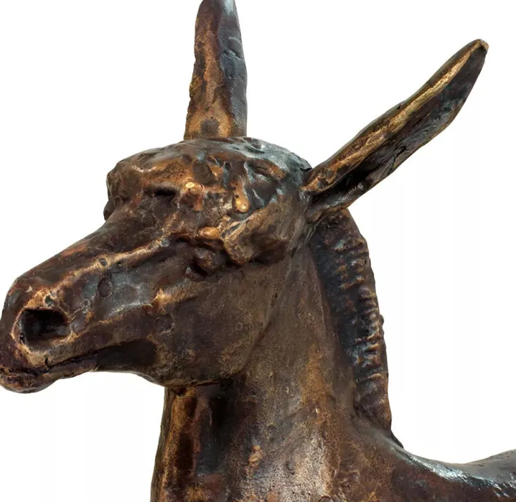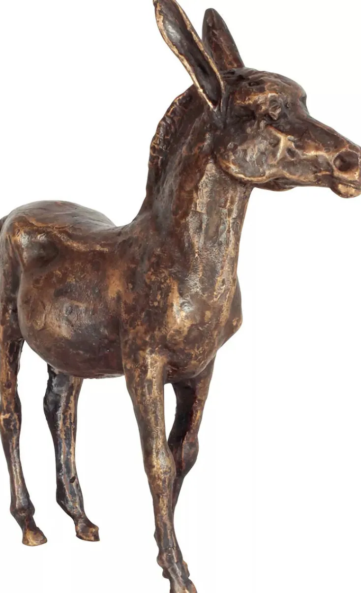 Der deutsche Bildhauer Kurt Arentz (1934-2014) vermochte es, dem klassischen Sujet der Tierplastik seine ganz eigene Seite abzugewinnen. Arentz betonte zwar immer die typischen Merkmale der Tiere, strebte dabei aber nie nach naturalistischer Perfektion. Die Oberflächen beließ er uneben und sichtbar strukturiert und verlieh damit jeder seiner Figuren einen sehr individuellen Charakter – so auch bei diesem Esel, unbekümmert und gelassen beobachtet er seine Umgebung.