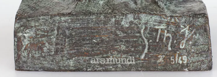 Thomas Jastram versteht sich als klassischer Bildhauer. Sein plastisches Werk umfasst dabei lebensgroße Arbeiten – darunter viele für den öffentlichen Raum wie ein imposanter Neptunbrunnen in Warnemünde, der 2022 aufgestellt wurde – Porträtbüsten und schließlich Kleinplastiken wie seine »Sophia«. Der Titel seiner Eulenskulptur verweist auf die Weisheit, die dem Nachtvogel als Begleiter der Athena/Minerva seit der Antike zugeschrieben wird. Die Eule ist daher auch ein Sinnbild der Philosophie. Jastram zeigt sie mit weit ausgebreiteten, zum Abflug bereiten Flügeln. Skulptur in feiner Bronze, gegossen im Wachsausschmelzverfahren, von Hand ziseliert, poliert und patiniert. Limitierte Auflage 49 Exemplare, nummeriert, signiert und mit der Gießerei- und ars mundi-Punze versehen. Mit nummeriertem Authentizitäts- und Limitierungszertifikat.