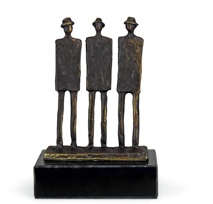 Gerards Figuren erzählen Geschichten des Augenblicks voller Freude und Erfolg. Diese bronzierte Skulptur visualisiert Momente des Beisammenseins.