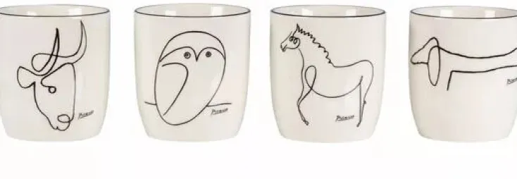 Becherset mit Picassos unvergesslichen Tiermotiven die er mit nur einer Linie zeichnete.