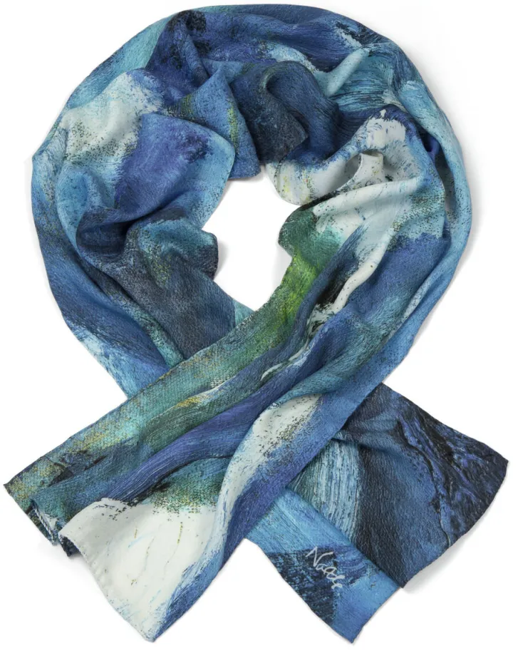 Original: 1948, Öl auf Leinwand, Stiftung Seebüll Ada und Emil Nolde. Feiner Wollschal mit einem Ausschnitt aus dem bekannten Nolde Werk »Hohe Sturzwelle«. Herausgegeben in Zusammenarbeit mit der Nolde Stiftung Seebüll.