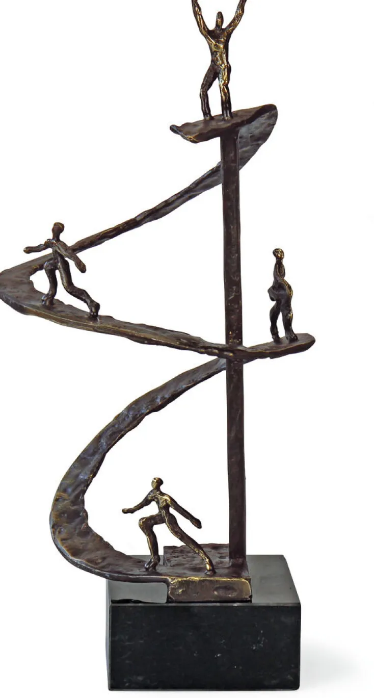 Der Weg zum Gipfel verläuft in Kurven, doch der Triumph macht den mühsamen Aufstieg lohnenswert. Gerards filigrane Skulpturen sind kleine Motivatoren, die jeden Schreibtisch, ob am Arbeitsplatz oder zu Hause, schmücken.