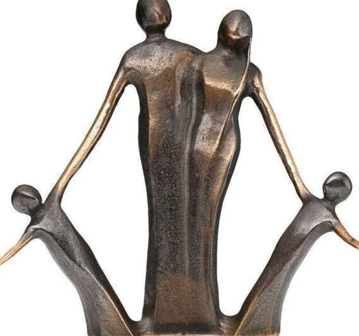 Kerstin Stark fängt in ihren Skulpturen auf liebevolle Art und in einer einfachen Klarheit die essentiellen Dinge des menschlichen Daseinsein ein. In dieser Arbeit verewigt sie die Familie als Bund fürs Leben. Die Skulptur ist aus massiver Rotgussbronze im Sandgussverfahren gegossen, in Handarbeit versäubert, patiniert und poliert.