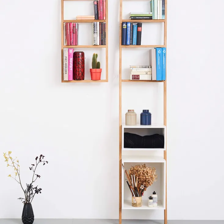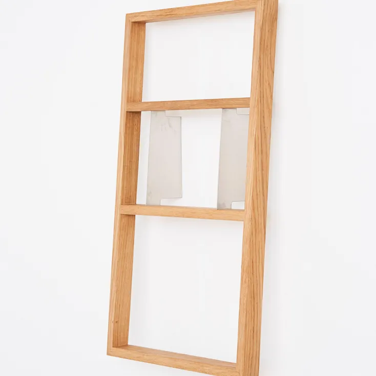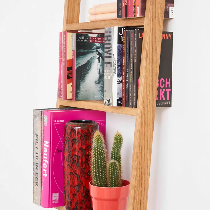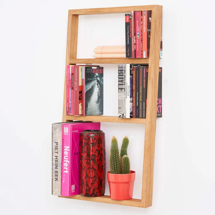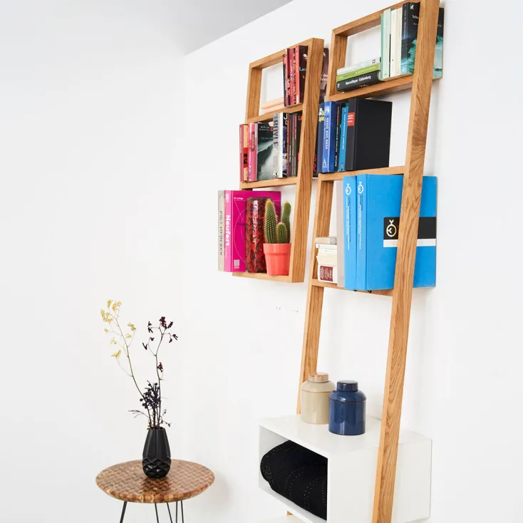 In der Hamburger Manufaktur »das kleine b« wird jedes Regal aus heimischer Eiche handgefertigt. Als Einzelstück oder individuelle Regalwand, im Rastermaß oder nach eigenen Vorstellungen montiert, entstehen mit dem Regal »b« kleine oder große, symmetrische oder eigensinnige Regalwände. Jede für sich ein Unikat.