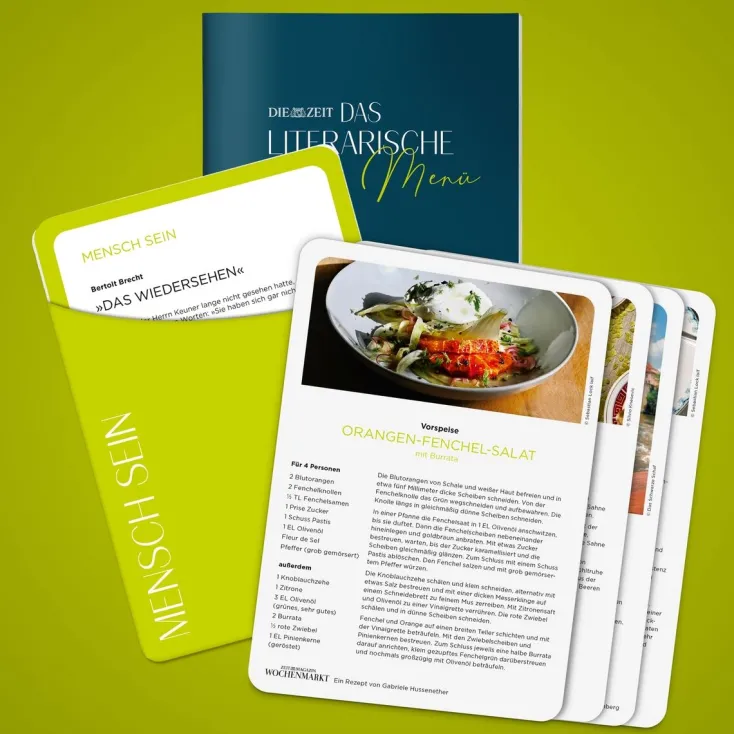 »Mensch sein«, »Lieben« und »Erinnern« – zu diesen drei Themen enthält die ZEIT-Edition »Das Literarische Menü« jeweils mehrere passend ausgewählte Literaturstellen und eigens entwickelte Diskussionsfragen und Denkanstöße, mit denen Sie als Moderator/in des Abends für angeregte Gespräche sorgen.