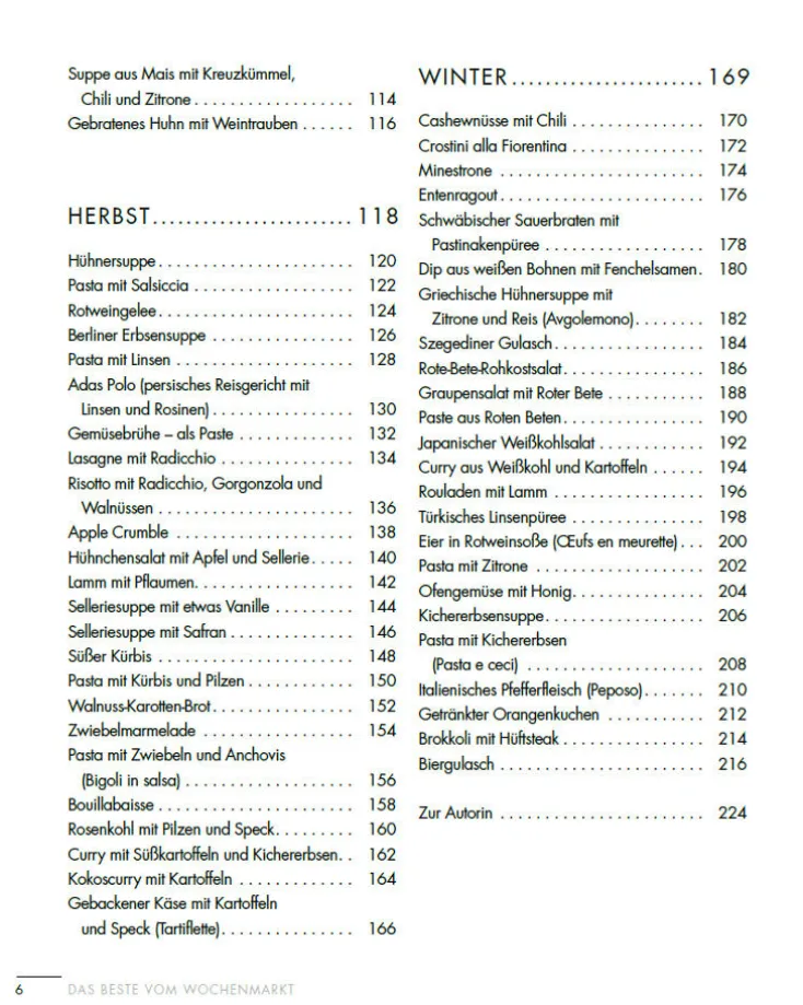 Kochen ist ein Genuss und gar nicht so schwer. Die Rezepte der beliebten Kochkolumne »Wochenmarkt« des ZEITmagazins zeigen, dass es keine langen Zutatenlisten und keine komplizierten Küchentechniken braucht. Elisabeth Raether kocht frisch, einfach und doch immer besonders. Im Frühjahr werden die ersten frischen Kräuter zu einer Soße zum Lammkarree verarbeitet. Im Sommer werden alle Arten von Gemüse gefeiert, zum Beispiel mit dem italienischen Auberginenauflauf »Melanzane alla parmigiana«. Im Herbst zeigt die Autorin, wie man einer klassischen Selleriesuppe mit Vanille ein ganz eigenes Aroma verleiht. Und im Winter gibt es ein wärmendes Kokoscurry. Ob für Freunde, Familie oder auch, wenn man für sich allein kocht – Elisabeth Raethers Küche ist abwechslungsreich, unkompliziert und immer ein Vergnügen.