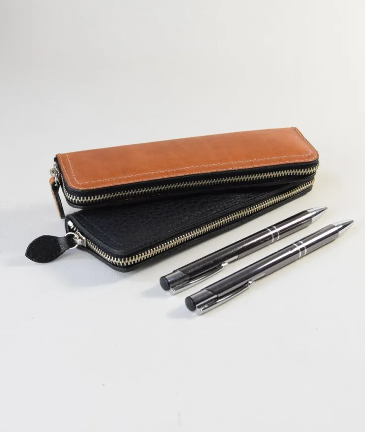 Das edle Stiftetui aus Leder wird in Handarbeit in Deutschland gefertigt und bietet Platz für zwei Stifte. Das Federmäppchen erscheint im klassischen Design und lässt sich schnell und einfach durch einen Reißverschluss verschließen. Ob Zuhause auf dem Schreibtisch oder auf Reisen – alle Stifte sind jederzeit gut aufbewahrt. Erhältlich in 2 Farben.