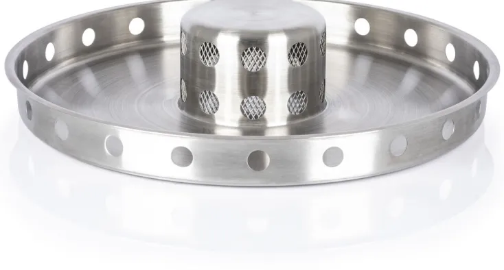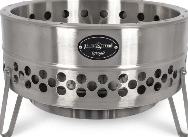 Mit der Feuerschale »Tyropit« holen Sie sich Lagerfeuerromantik in Ihren Garten und gesellige Runden um das knisternde Flammenspiel werden zu einzigartigen Momenten. Der doppelwandige Korpus aus hochwertigem Edelstahl umringt das Holzfeuer schützend und sorgt durch speziell positionierte Belüftungsöffnungen für eine nahezu rauch- und rußfreie Verbrennung. So können Sie Abende voller Licht und Wärme ausgiebig zelebrieren – freundlich zur Umwelt und zu den Nachbarn. Die »Tyropit« Feuerschale aus Edelstahl im Industrial Design überzeugt mit ihrer Effizienz und Funktionalität. Das Material ist besonders langlebig und erhält mit der Zeit eine unverwechselbare und charakteristische Patina. Drei stabile Standbeine sorgen für sicheren Halt auf deinem Terrassenboden und der integrierte Hitzeschild schützt empfindliche Untergründe.