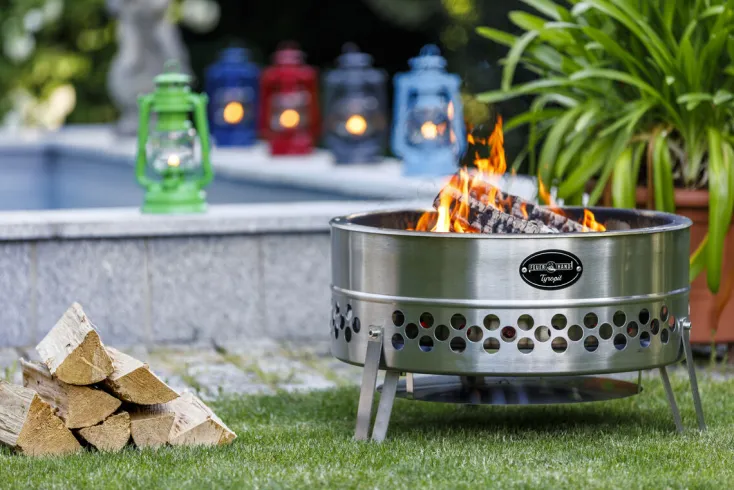 Mit der »Tyropit« Edelstahl-Feuerschale holen Sie Ihre Lieblingsmenschen ans Lagerfeuer im Garten oder genießen die gemütliche Atmosphäre ganz für sich allein.