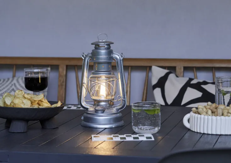 Seit 1893 bringen die Laternen von Feuerhand zuverlässiges Licht in das Leben der Menschen. Mit der »Baby Special 276« Laterne von Feuerhand haben Sie eine zeitlose LED Outdoor-Beleuchtung – für Momente der Entspannung, umgeben von verlässlichem Licht. So lassen sich die Abendstunden in entspannter Runde oder ganz für sich allein perfekt ausklingen. Auch im Innenbereich sorgt die Laterne für ein gemütliches Ambiente im Laternenschein. Die besondere Gemütlichkeit entsteht vor allem durch die stufenlose Dimmbarkeit. Der Regler befindet sich genau an der Stelle, an der ansonsten das Öl nachgefüllt werden kann.