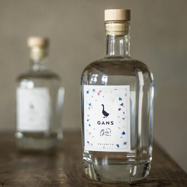 Seine Heimat ist die Prignitz, eine herbe Landschaft im Nordwesten der Mark Brandenburg, gelegen an der Elbe auf halber Strecke zwischen Berlin und Hamburg. Hier kommt der »GANS Gin« von einem einzigartigen, kleinen Hof im Ort Klein Gottschow und wird aus regionalen Zutaten wie Haferstroh, Apfelbeeren, Akazienblüten, Klee und natürlich Gänseblümchen destilliert. Ähnlich wie die Persönlichkeit der Menschen seiner Heimat schmeckt »GANS Gin« erstaunlich harmonisch und doch originell, aber immer souverän und authentisch.