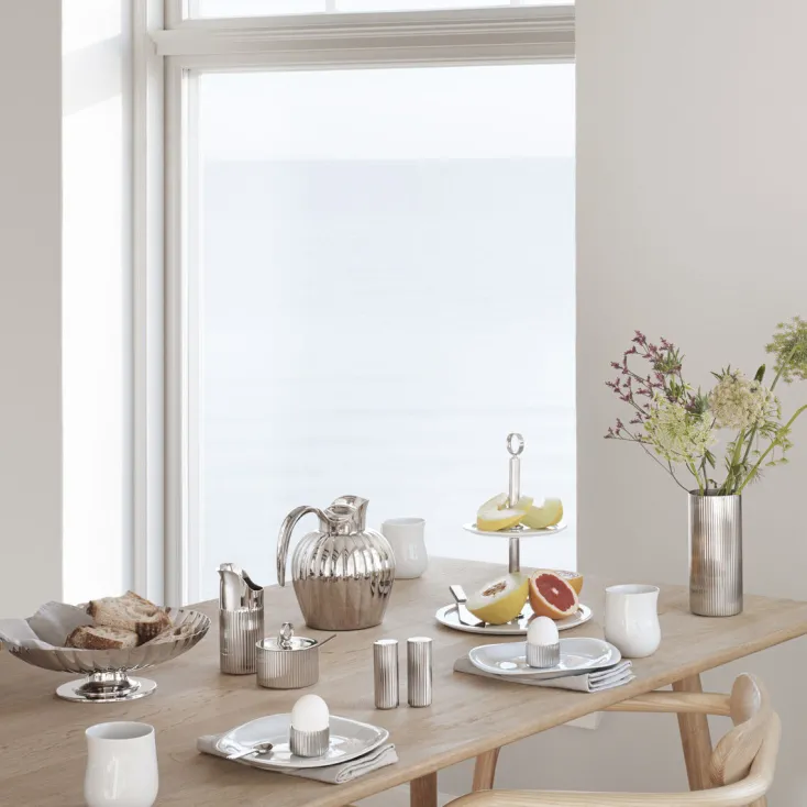 Georg Jensen überträgt edles Design auf Objekte des Alltags mit Materialien wie Edelstahl, Holz und Aluminium. Der klassische Stil des Nordens, verbunden mit der Funktion für das tägliche Leben, verwandelt diese Gegenstände in Kunstwerke.