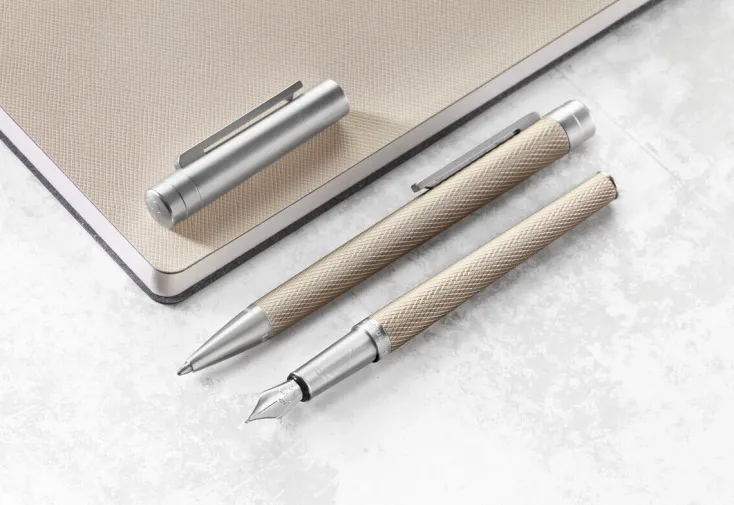 Das Ornamentmuster von Füllfederhalter, Rollerball und Kugelschreiber erinnert an die Schöpfsiebe der Papiermacher bei Hahnemühle. Feine Lasergravuren des Markenzeichens von Hahnemühle, dem Hahn, sind markante und einzigartige Details. Jeder Stift liegt sacht und griffig in der Hand und gleitet mühelos über das Papier.
