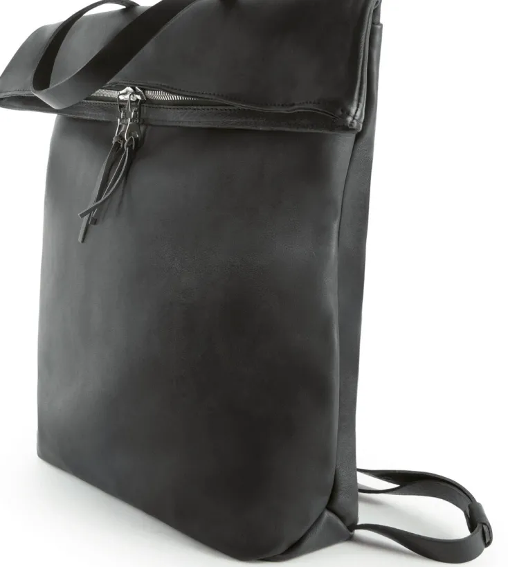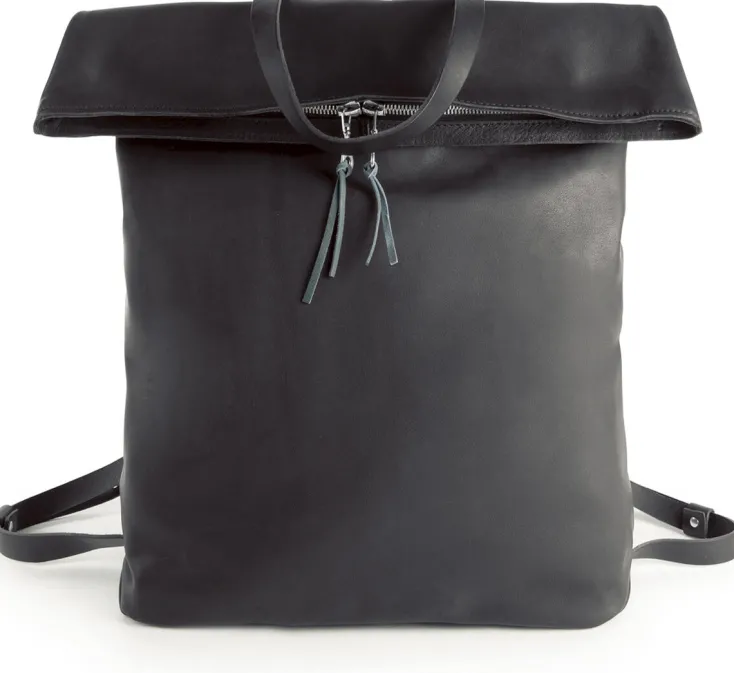 Der »Nabuku« Backpack flap Rucksack wird aus 100% pflanzlich gegerbtem Rindleder in der Manufaktur in Obertshausen handgefertigt. Das Leder hat eine schöne Flächenspannung und ist dabei zugleich weich und geschmeidig. Das Hauptfach wird mit einem Zwei-Wege-Reißverschluss sicher verschlossen und ist durch seine „flap“ in der Höhe und damit in seinem Fassungsvermögen erweiterbar. Der Rucksack hat vorder- und rückseitig ein Reißverschlussfach außen. Der »Nabuku« Backpack flap liegt schön am Rücken an und ist durch die breiten Schulter-Patches der Trageriemen sehr bequem zu tragen. Insgesamt ist der Rucksack mit 600g recht leicht.
