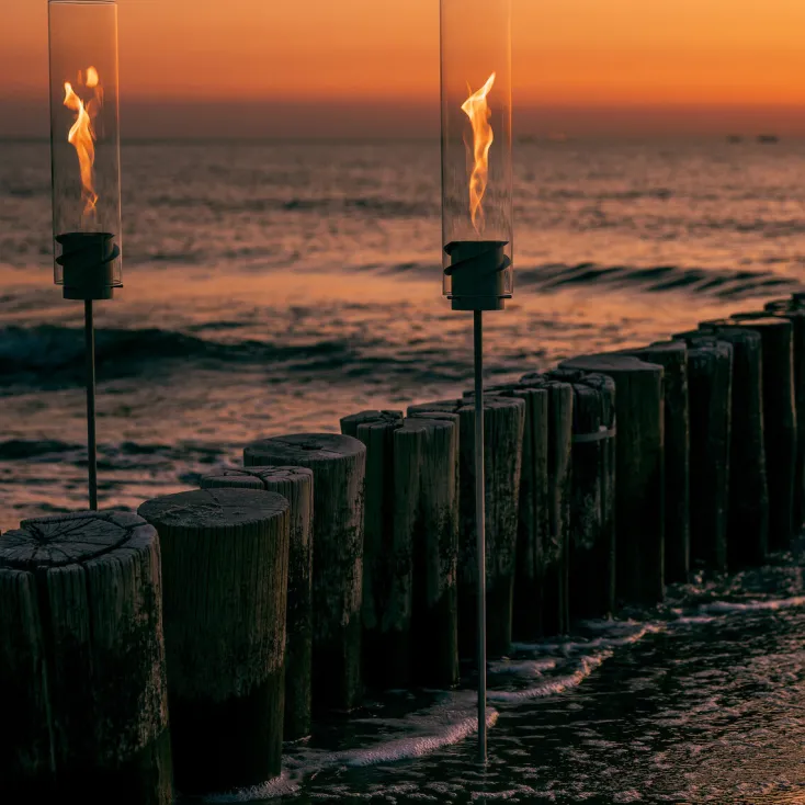 Mit dem Erdspieß als Zubehör verwandelt sich SPIN im Handumdrehen in eine Gartenfackel. Einfach in den Rasen, das Beet oder den Blumentopf gesteckt oder auf die Base geschraubt, verzaubert sie die Gäste der nächsten Gartenparty und wird zum Blickfang des Abends.