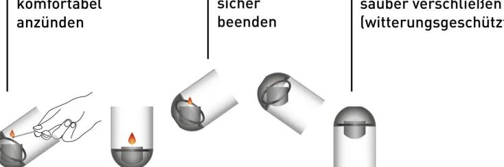 Die »Gravity Candle« beeindruckt mit einem faszinierendem Spiel aus Feuer und Schwerkraft. Das Geheimnis dahinter: Die Kerze ist kardanisch gelagert und bleibt schwerkraftbedingt immer im Lot. So zünden Sie den Docht einfach direkt im Glasrohr mit einem Streichholz an, ohne sich Sorgen um Ihre Finger machen zu müssen. Drehen Sie die »Gravity Candle« einfach um, und die Flamme erlischt. Sicher und sauber. Ohne Auspusten, Rauch oder Wachsflecken am Glas! Darüber hinaus schützt die umgedrehte Position das Innere vor Schmutz, Regen oder Staub.