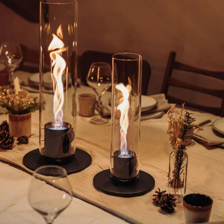 Wohlige Wärme und geselliges Beisammensein sind die unverwechselbaren Eigenschaften des Feuers, die uns seit jeher in seinen magischen Bann ziehen. »SPIN« fängt genau diese einzigartige Lagerfeueratmosphäre auf spektakuläre Art und Weise in einem Glaszylinder ein und lässt Ihren Balkon, Ihre Terrasse, Ihr Wohnzimmer oder Ihren Esstisch im sanften Licht der Flammen erstrahlen.