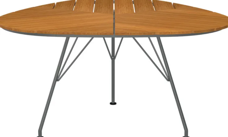 Der Gartentisch »Leaf« von Houe ist ein moderner Tisch in dreieckiger Blatt-Form. Der Tisch hat ein Gestell aus robustem Stahl in der Farbe Grau und eine Tischplatte aus qualitativ hochwertigem Bambus. Der Tisch bietet Platz für mindestens 6 Personen und ist sowohl für den Innen- als auch den Außenbereich geeignet. Perfekt für gemütliche Stunden auf der Terrasse oder auch zum Grillabend in kleinerer Runde.