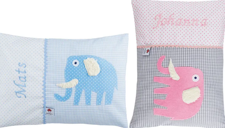 Die individualisierbaren Kissen (35 x 25 cm B x H) von Glückspilz werden aus 100 % Baumwolle in Deutschland hergestellt. Die individuelle Bestickung (max. 10 Zeichen) des Wunschnamens wird per Hand aufgetragen und sorgt mit der jeweils passenden Zackenlitze dafür, dass jedes Kissen zum Unikat wird. Das aufwendig in Handarbeit hergestellte Namenskissen »Fuchs« ist für Jungen und Mädchen gleichermaßen geeignet und ein wunderschönes Geschenk zur Geburt, Taufe oder zum Geburtstag.