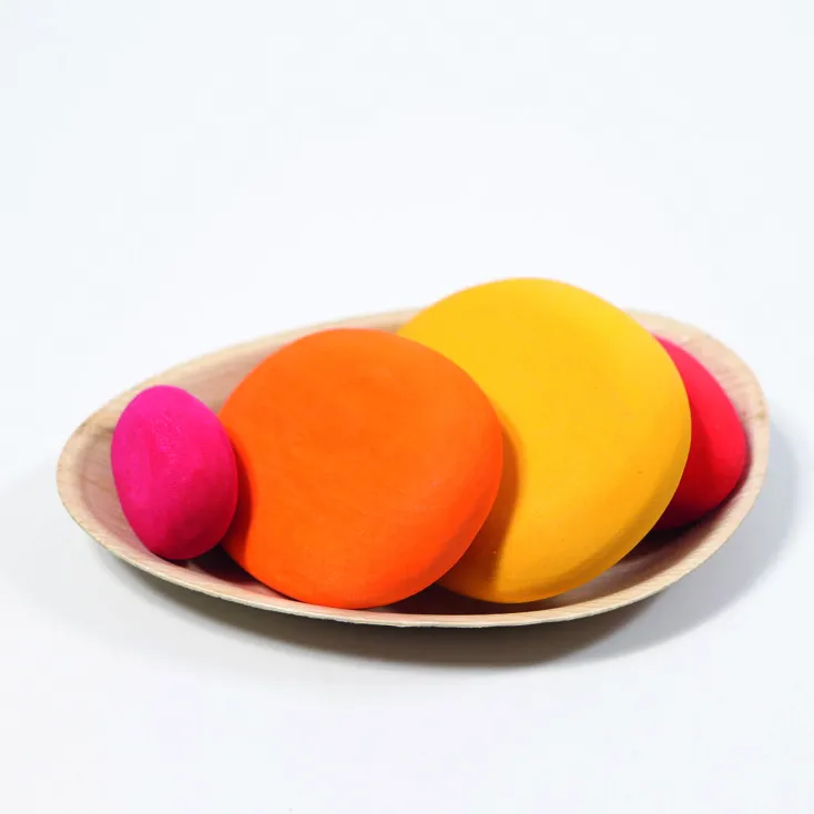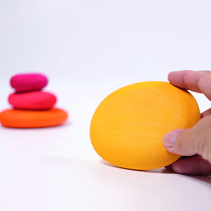 Diese Handschmeichler sind ein kniffliges Balance Spiel beim Stapeln und Bauen. Oder sie bereichern kleine Welten: die Steine können in einem Fluss liegen (Seidentuch), eine Höhle bestücken in einem Wald oder bilden ein steiniges Gelände.
