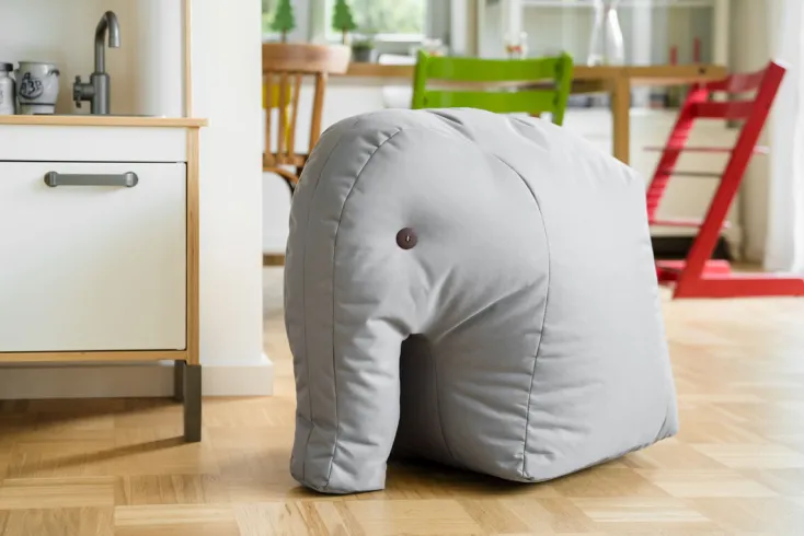 Es geht nicht mehr vor und zurück. Elefant »CHARLY« ist im Porzellanladen seiner Großtante Frieda stecken geblieben und wartet nun auf tatkräftige Unterstützung seiner Freunde. Seine strapazierfähige Haut aus festem Stoff ist robust und beschichtet. Alles Flüssige perlt dank des Lotuseffektes von ihm ab. Ein Glück hat er genug Futterreserven angesammelt, sodass er auch in seiner Notlage anschmiegsam und formstabil bleibt. Aber auch wenn mal nur entspannt werden soll, ist Elefant »CHARLY« durch seine Formstabilität eine gute Option. Seine Augen bestehen aus starken Knöpfen. Bei Bedarf kann der Bezug mit einem nassen Tuch abgewischt werden.
