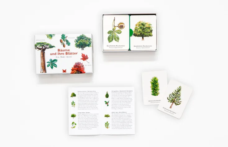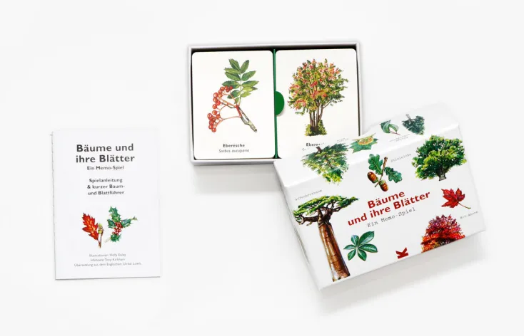 »Bäume und ihre Blätter« ist ein Memo, das jede*n in Nullkommanichts zum*r echten Baumexpert*in macht! Die Bild-Paare bestehen aus den Blättern und dem Baum, von dem sie stammen. Wer die meisten Paare findet gewinnt! Mit wunderschönen Illustrationen bekannter wie außergewöhnlicher Bäume aus der ganzen Welt, ist dieses lustige und lehrreiche Spiel das ideale Geschenk für alle Naturliebhaber*innen. Das beiliegende Booklet enthält zudem interessante Fakten zu den dargestellten Bäumen und wurde vom Leiter des Arboretum der Royal Botanic Gardens in Kew London geschrieben.
