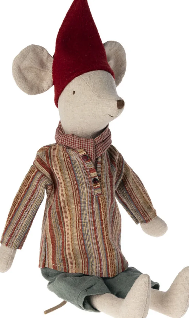 Die Maileg Weihnachtsmaus ist nicht nur eine charmante Dekoration, sondern auch ein liebevoll gestaltetes Spielzeug, das die Weihnachtszeit noch festlicher macht. Dank des abnehmbaren Weihnachtsmannhuts kann sie auch nach den Festtagen das ganze Jahr über für Freude bereiten.