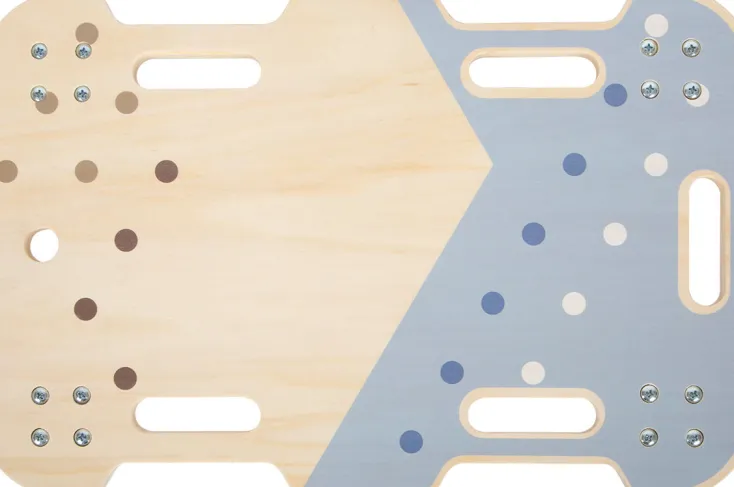 Für jede Menge Bewegungsspaß sorgt dieses »Rollbrett Adventure« aus Holz. Mit dem Rollbrett ist jede Situation ein Abenteuer ob sitzend, kniend oder liegend – das robuste, kippsichere Rollbrett macht jeden Spaß mit und trainiert dabei ganz nebenbei Körperkraft und Gleichgewicht. Durch die Umlenkrollen, die sich horizontal einfach und schnell drehen lassen, werden flinke Richtungswechsel ermöglicht. An Sicherheit ist nicht gespart, Ihre Kleinen können sich an den seitlichen Einbuchtungen an den Haltegriffen festhalten. Für eine geräuscharmes, bodenschonendes Fahren ist durch gummierte Rollen gesorgt. Zusammen bietet das Rollbrett noch eine extra Portion Spaß, indem zum Beispiel ein Seil durch das Loch und die Griffschlitze befestigt wird, um sich gegenseitig zu ziehen. Durch die Gestaltung, die klare Formgebung und viel naturfarbenes Holz integriert sich das Rollbrett leicht in jede Wohn- und Kinderzimmerumgebung.