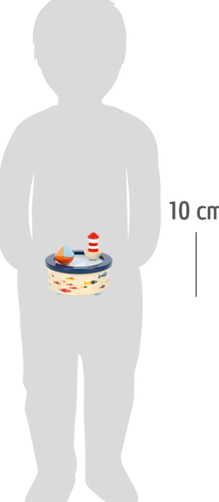 Die maritime Spieluhr »Großer Ozean« aus Holz verzaubert mit dem Schlaflied »Weißt Du, wieviel Sternlein stehen« und begleitet Kinder behutsam ins Land der Träume. Ein kleines Schauspiel entfaltet sich, wenn der Leuchtturm und das Segelboot im Takt der Melodie sanft im Kreis tanzen. Mit kinderleichter Bedienbarkeit ist diese Spieluhr besonders auf die kleinen Hände zugeschnitten. Die abnehmbaren Holzfiguren ermöglichen es sogar den Kleinsten, die Spieluhr eigenständig zu nutzen. Das zentrale Designelement der Unterwasserwelt begeistert mit liebevollen Details und kinderfreundlichem Charme. Neben ihrer Funktion als Einschlafhilfe wird die Spieluhr zu einem dekorativen Blickfang im Kinderzimmer. Abgerundete Kanten verleihen nicht nur eine angenehme Haptik, sondern unterstreichen auch die hochwertige Verarbeitung.