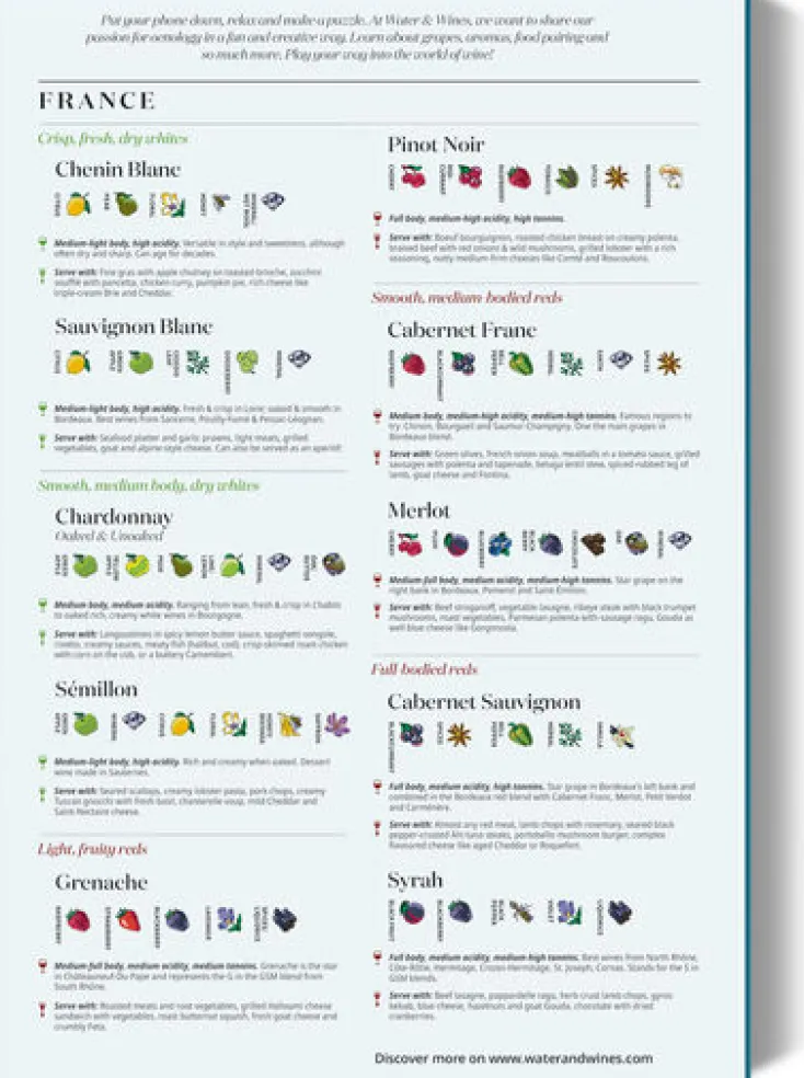 Navigieren Sie mit diesem wunderschönen handgezeichneten Puzzle durch die Weinreben Frankreichs, eine Region nach der anderen. Entdecken Sie die Trauben und Sternbezeichnungen der ikonischen Regionen, die Frankreich zu einem der berühmtesten Weinländer der Welt gemacht haben. Die von Sommeliers kuratierte Puzzlebox enthält Traubenprofile, die die unterschiedlichen Aromen, die wichtigsten Eigenschaften und Tipps für die Kombination mit Speisen jeder Region beschreiben.