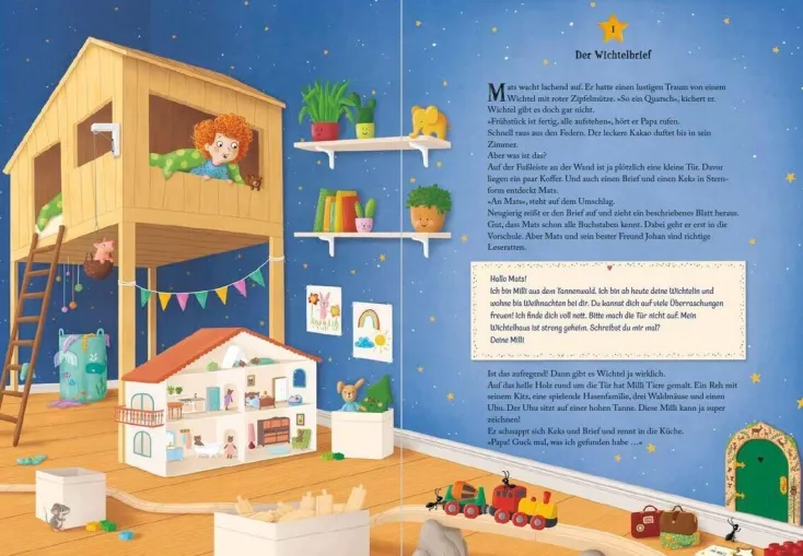 Am ersten Dezember ist es so weit: Wichtelmädchen Milli zieht hinter die magische Wichteltür. Mats staunt, als er die Tür in seinem Kinderzimmer entdeckt. Dann gibt es Wichtel also wirklich! Milli und Mats erwarten 24 Adventstage voller weihnachtlicher Überraschungen und winterlicher Abenteuer. Milli richtet sich im Wichtelhaus gemütlich ein und macht nächtliche Streifzüge durchs Kinderzimmer, sie hilft Mats beim Stiefelputzen und spielt seinen Eltern einen Streich. Zusammen machen die beiden Musik, kümmern sich um die verletzte Frau Meise und vor allem werden sie richtig dicke Freunde. So vergeht die Weihnachtszeit wie im Fluge!
