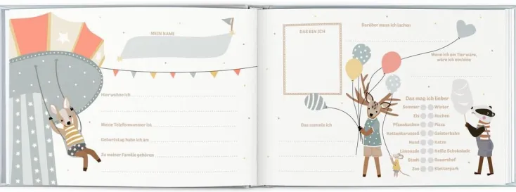 Ein Freundebuch, das deine Freunde mit Piratenhasen, im Weltall fliegenden Dachsen und verschiedenen Waldtieren in Erinnerung behält.