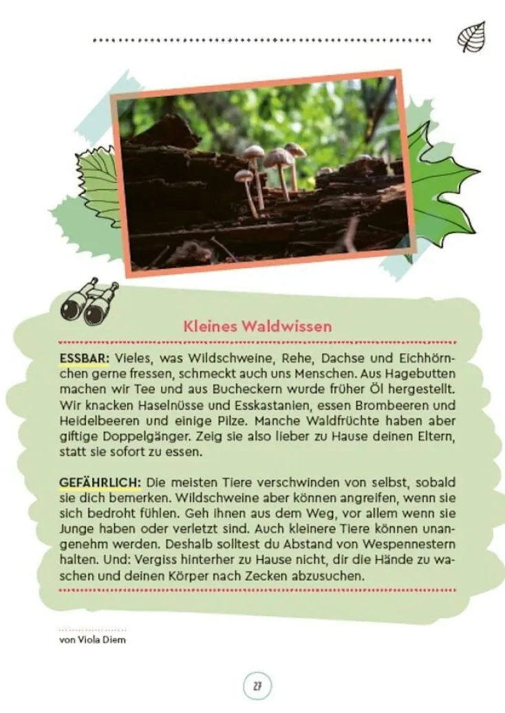 Wie baut man einen Unterschlupf in der freien Natur? Wen trifft man alles auf einer Wiese? Wie wird man zum echten Rodel-Profi? Mit dem ZEIT LEO-Outdoor-Erlebnisbuch »Auf ins Abenteuer« werden Kinder ab 8 Jahren zu richtigen Survival-Experten. Hier erfahren sie, wie sie einen Unterschlupf in der freien Natur bauen, wie sie als Wald-Detektiv Spuren lesen können und gemeinsam mit ihren Freundinnen und Freunden ein Lagerfeuer machen. In diesem Buch finden sich die spannendsten Abenteuer-Inhalte aus ZEIT LEO, dem beliebten Kindermagazin der ZEIT. Dazu gehört jede Menge Wissenswertes über Natur, Umwelt, Tiere, Pflanzen und Jahreszeiten. Dank der zahlreichen Bauanleitungen, Experimente und jeder Menge Ideen für verrückte, spannende Outdoor-Aktivitäten wird es draußen nie langweilig, egal bei welchem Wetter und zu welcher Jahreszeit.