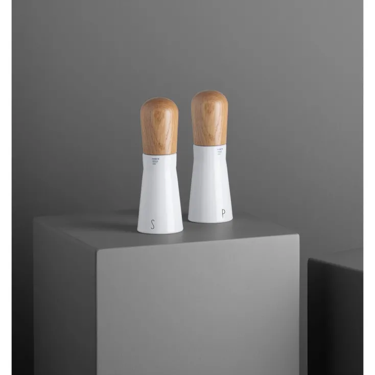 Exklusiv für die ZEIT erscheinen die ästhetisch-funktionalen Gewürzmühlen der renommierten Porzellanmanufaktur KPM Berlin im Set mit Griffen aus massivem Eichenholz und von Hand aufgemalten Buchstaben S und P auf den Porzellankörpern. Dank einer großen Öffnung sind die Mühlen einfach befüllbar und verfügen über einen sicheren Stand und ein verstellbares Mahlwerk. Das glänzende Porzellan des Mühlenkörpers und die natürliche Oberfläche des Echtholz- Griffes versprechen ein sinnlich-haptisches Erlebnis beim Kochen.