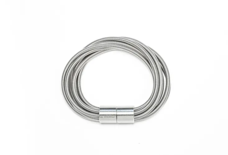 Das Armband »Twist« mit Magnetverschluss von la mollla verkörpert strahlende Lichteffekte, brillanten Glanz und innovative Visionen. Der voluminöse Edelstahldraht erlaubt es, mit dem Licht zu spielen und durch verschiedene Designkombinationen beeindruckende Effekte zu erzielen.