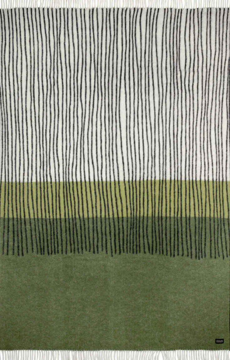 Die weiche Decke aus 100 % skandinavischer Wolle ist nicht nur sehr kuschelig: Durch die auffälligen Streifen und den bunten Akzent ist die Decke ein Statement in jedem Schlafzimmer.