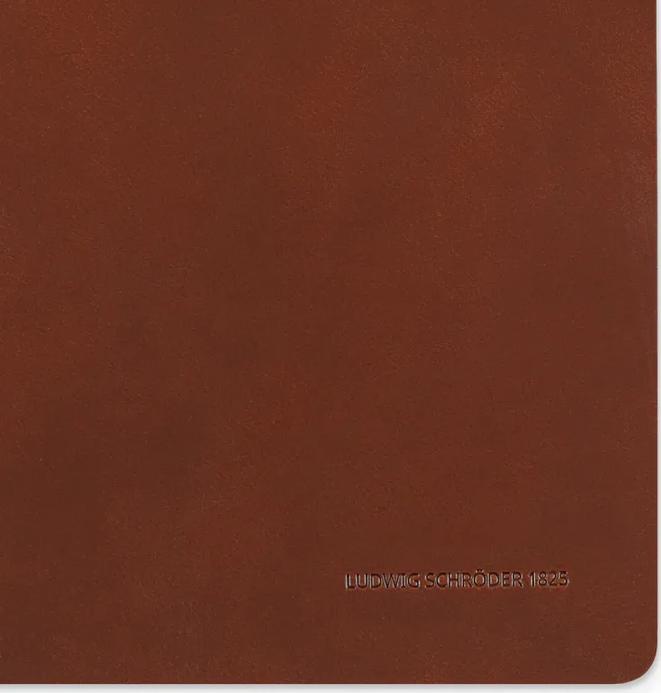 Das aus einem ca. 3,2 mm starken Rinderhals geschnittene und in Nord-Spanien gegerbte Leder eignet sich durch seine Festigkeit besonders gut als edle Schreibtischunterlage. Durch die individuelle Struktur des Halsleders wird jede Schreibtischunterlage zum Unikat. Erhältlich in zwei verschiedenen Größen.