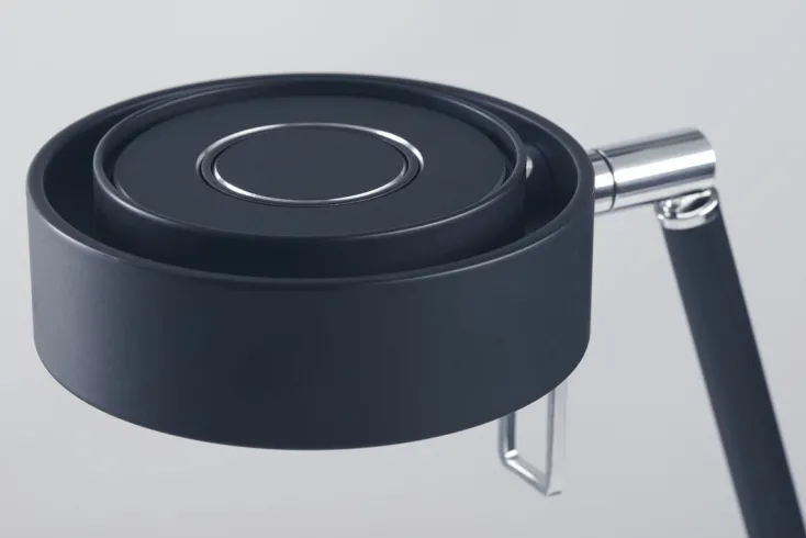 Modern, elegant und mit leistungsfähigen LEDs ausgestattet, sorgt Tischleuchte »Pure von mawa design für elegante und beste Arbeitsatmosphäre bei Ihnen zuhause. Exklusiv für die ZEIT erscheint die Leuchte nun in einem dunklen Blau. Ausgestattet mit einem neuen Lichtkopf, der nicht nur eine leistungsfähigere LED, sondern auch ein klareres und ruhigeres Design besitzt. Durch seine besondere Bauweise hat dieser eine ausgezeichnete Kühlleistung. Dank des breiten Abstrahlwinkels der »Pure« wird auch dicht über der Arbeitsfläche ein weiter Bereich gleichmäßig ausgeleuchtet. Speziell entwickelte, verchromte Gelenke sorgen für höchste Flexibilität. Der Lichtkegel ist auch nach stundenlangem Betrieb durch den verchromten Spezialgriff einstellbar, denn der Ring um den inneren Leuchtenkopf bleibt angenehm kühl. Im oberen Bereich des Leuchtenstabes ist ein Tastschalter mit Memoryfunktion integriert. Der Kopf der Leuchte ist um 360° dreh- und um 90° schwenkbar, der Leuchtenstab ist um 22° verstellbar.