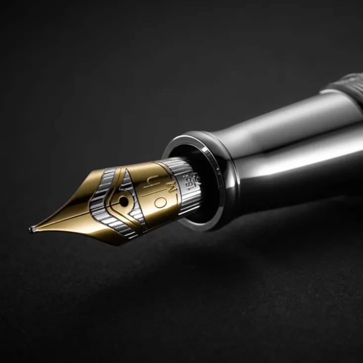 An der firmeneigenen Feder, mit eingraviertem Markenlogo kann man den originalen Otto Hutt Füllfederhalter erkennen. Es handelt sich um eine hochwertige Stahlfeder mit einer wunderschönen bi-Color-Optik, die durch eine Platin- und Gold-Beschichtung entsteht. Ein besonders angenehmes Schreibgefühl garantiert der sanfte und kontinuierliche Tintenfluss. Somit wird jeder Brief, jede Signatur zu einem wahren Schreibvergnügen.