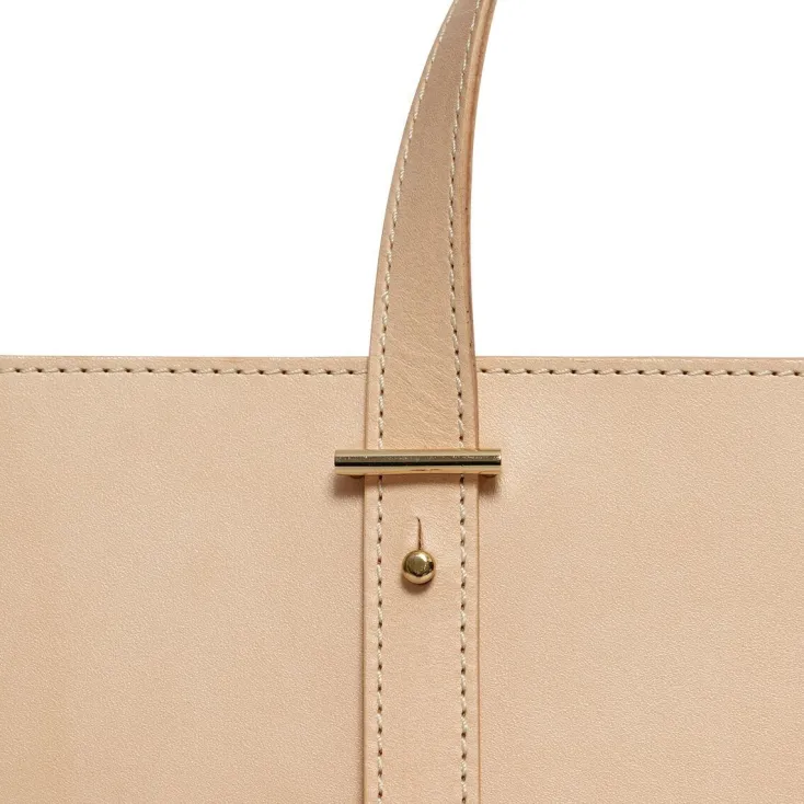 Die Tragetasche »DIE ZEIT 1« aus großflächigen Lederzuschnitten kann, dank dreifach verstellbarer Riemen, entweder am Kurzgriff oder über der Schulter getragen werden. Das handverlesene skandinavische Rindsleder wurde in Belgien rein pflanzlich gegerbt und in einer polnischen Täschnerei sorgfältig von Hand verarbeitet. Die Innentasche aus weichem Kalbsveloursleder bietet neben einem geräumigen Hauptfach ein kleineres Reißverschlussfach für den schnellen Zugriff auf die wichtigsten Habseligkeiten. Optische Glanzpunkte setzen die haltbaren Beschläge aus massivem Messing.