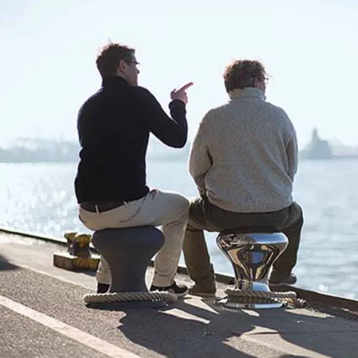 Der Hamburger Hocker mit Segeltau von Philipi ist einem Poller im Hamburger Hafen nachempfunden, an dem Schiffe vertäut werden. Damit steht er für vieles: Aufbruch, Neuanfang, Neugier und Reiselust, genauso wie das wieder Nachhause kommen und Bleiben.