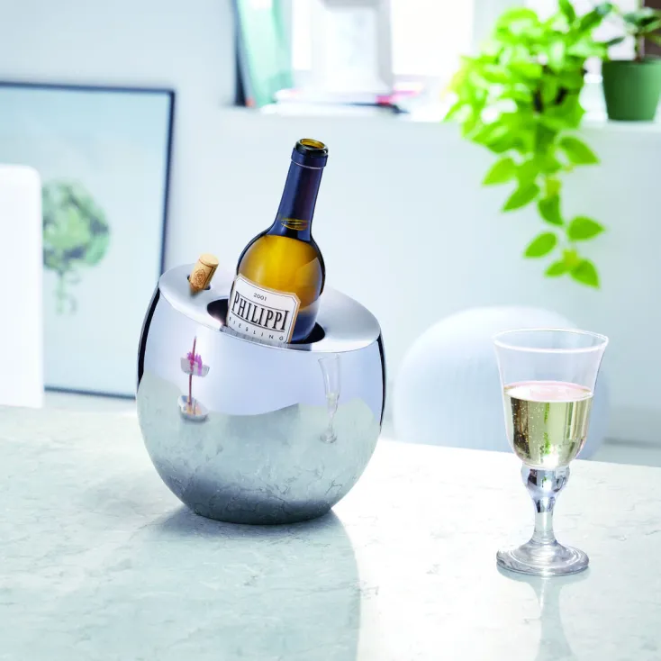 Die Funktionalität trifft auf modernes Design. Der in Handarbeit gefertigte Flaschenkühler »Froid« bringt Freude an den gedeckten Tisch. Die doppelwandige Beschaffenheit des Weinkühlers sorgt dafür, dass Flaschen aller Art kalt bleiben. Der integrierte Korkenhalter stellt den Verschluss und den Wein gekonnt in Szene.