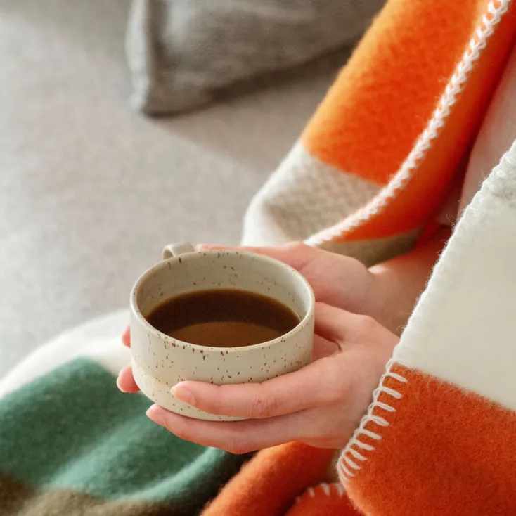 Diese farbenfrohe Lammwolldecke »Mikkel« von Røros Tweed ist ausgesprochen weich und angenehm wärmend.