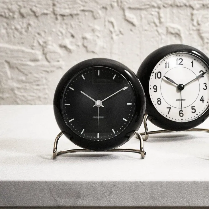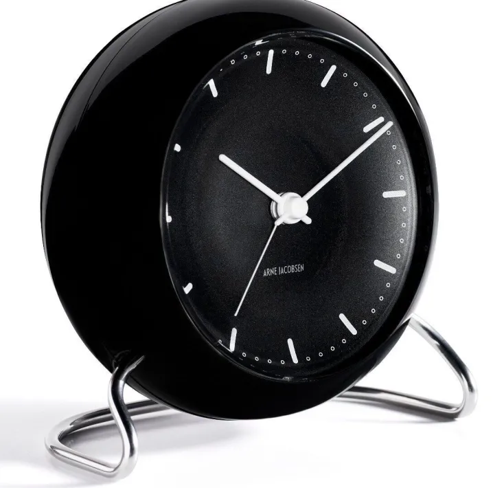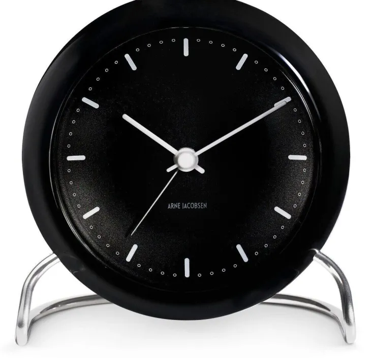 Die Tischuhr »AJ City Hall« wurde von dem weltberühmten Architekten und Designer Arne Jacobsen designed. Ihr klares, ikonisches Ziffernblatt ist der Wanduhr des Rathauses in Rødovre nachempfunden, welche Arne Jacobsen in den 1950er-Jahren entwarf. Dies macht die Tischuhr »AJ City Hall« zu einem minimalistischen Klassiker der Mid-Century-Epoche.