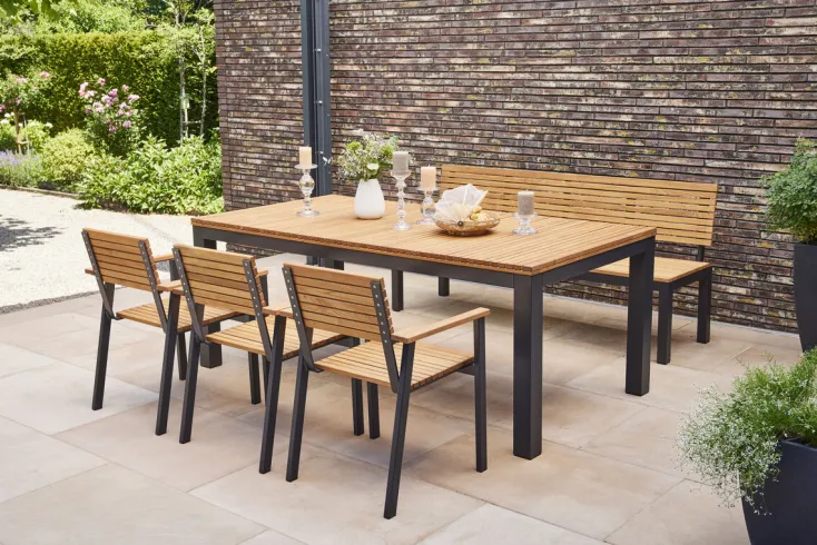 Die elegante Serie Bozen von Siena Garden steht für Nachhaltigkeit und elegantes Design für Ihren Garten. Das hochwertige Robinienholz FSC® 100% ist von Natur aus widerstandsfähig gegen Fäulnis, Insekten und Witterungseinflüsse, was das Material zu einer der langlebigsten Optionen für den Einsatz im Freien macht. Dies bedeutet, dass die Serie Bozen eine lange Lebensdauer hat und Ihnen viele Jahre Freude bereiten wird. Das pulverbeschichtete und in matt anthrazit eingefärbte Aluminium-Gestell ist sehr widerstandsfähig gegen Witterungseinflüsse wie Regen, Sonne und Schnee sowie gegen Korrosion und Rost. Darüber hinaus ist es sehr einfach zu pflegen und erfordert nur eine regelmäßige Reinigung mit Seifenwasser, um Schmutz und Ablagerungen zu entfernen. Entspannen Sie jetzt mit der »Bozen« 2er Bank und finden Sie Ihren neuen Lieblingsplatz im eigenen Garten. Die passenden Stühle oder auch den Tisch der Serie Bozen erhalten Sie ebenfalls im ZEIT Shop.