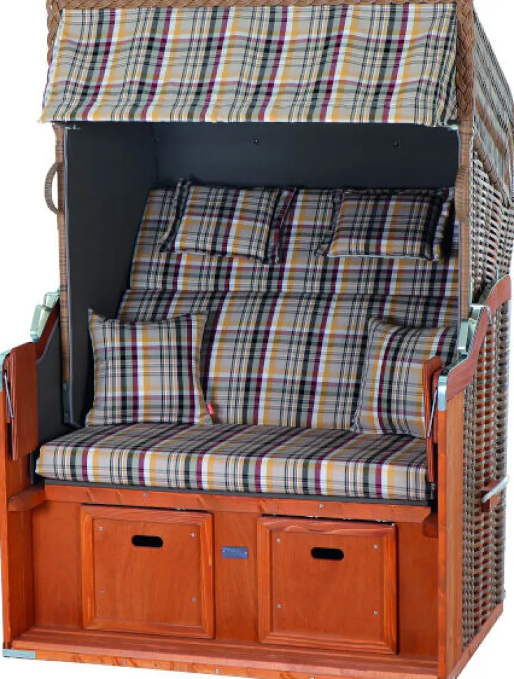 Der Oberkorb ist variable verstellbar und durch eine extra starke Polsterung sehr gemütlich. Das Holz ist imprägniert und der Kunststoff wurde rundum von Hand geflochten. Dabei werden nur Stoffe verwendet, welche eine extrem hohe Qualität haben, sodass ihnen auch die UV-Strahlung kaum etwas anhaben kann. Der Oberkorb wurde aus einem Stück geflochten, dadurch gewinnt er an zusätzlicher Stabilität. Genießen Sie Ihren Strandkorb in Ihrer grünen Oase! Jetzt heißt es nur noch: Füße hoch und Entspannen, denn der Gartenstrandkorb wird bereits fertig montiert zu ihnen geliefert!