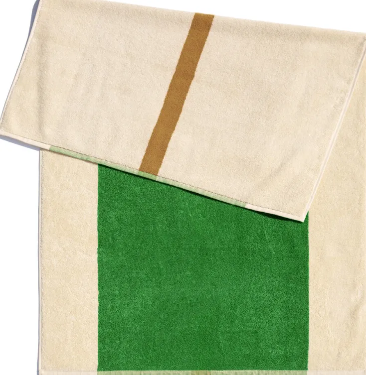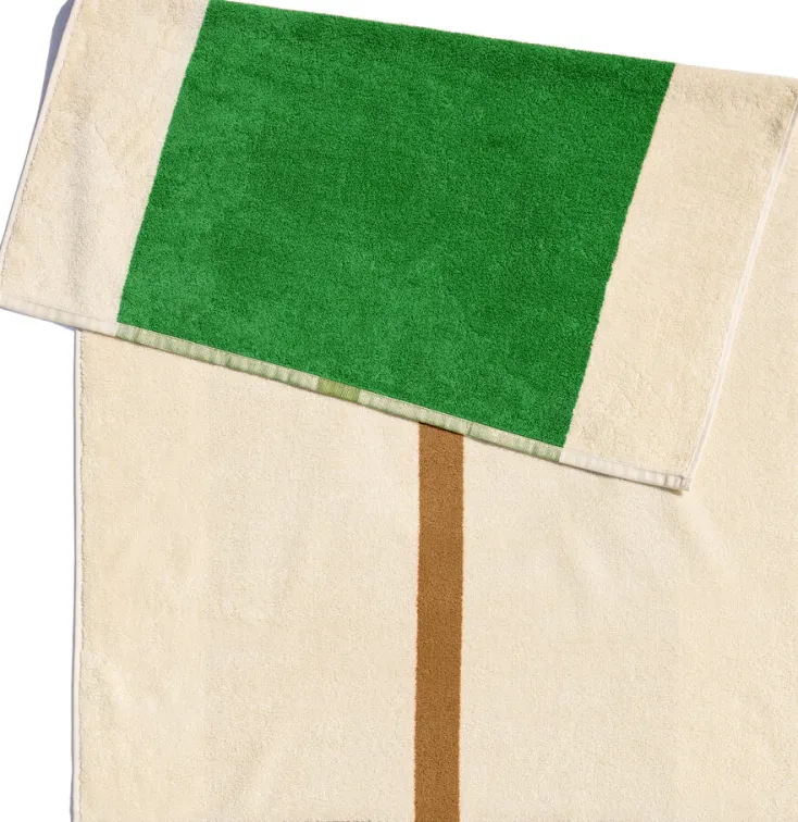 Einzigartig an dieser Kollektion ist, dass Vorder- und Rückseite unterschiedlich sind. Die dezent farbfrohen Badematten sind 50 x 80 cm groß, aus wunderbar weicher Bio-Baumwolle gefertigt und hat ein Gewicht von 1000 Gramm pro Quadratmeter. Dank der kurzen Schlingen fühlt sich die Badematte nicht nur kompakt an, sondern ist auch außergewöhnlich weich. Die Kollektion von Suite702 ist das Ergebnis einer Zusammenarbeit mit Karel Martens und basiert auf dem Kunstprojekt „Farben am Strand“. Erhältlich in verschiedenen Farbkombinationen.