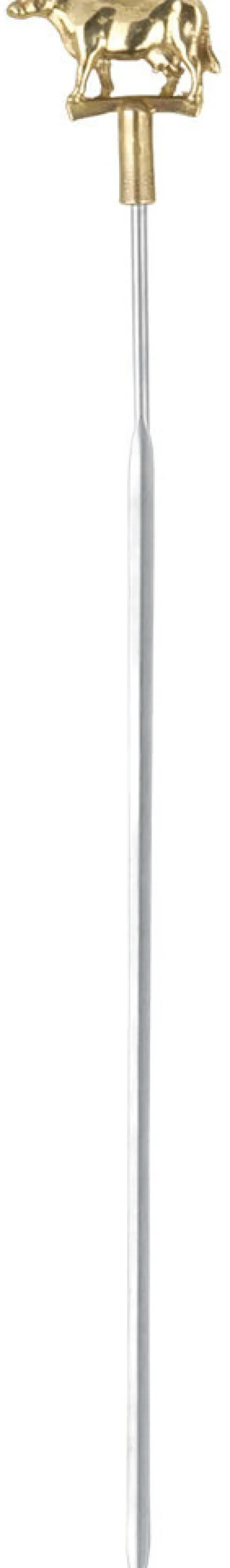 Edles und einzigartiges Grillspieße-Set aus Edelstahl mit vier Tier-Motiv aus massivem Messing. Das Set umfasst je einen Spieß mit Hahn, Fisch, Widder und Rind-Motiv. Die Spieße sind 28 cm lang und haben eine scharfe Spitze mit einem rautenförmigen Querschnitt, was das Auffädeln von Grillgut erleichtert und verhindert, dass es sich beim Grillen dreht. Die Messingfiguren sind fest und dauerhaft mit den Spießen verpresst. Das aufwändige Verfahren zur Fertigung der Motive in verlorenen Sandformen macht jedes Set einzigartig. Die Grillspieße werden handwerklich in Solingen hergestellt und sind in verschiedenen Motiven erhältlich. Sie sind hitzefest und sollten per Hand gereinigt werden.