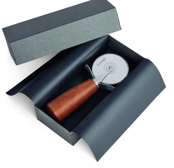 Der triangle Pizzaschneider »Soul« ist sonders scharf und stabil. Das gehärtete und sorgfältig geschärfte Schneidrad aus Spezialstahl bleibt dauerhaft scharf, während die beidseitige Führung für viel Stabilität sorgt. Neben dem Schneiden und Portionieren von Pizza und Flammkuchen eignet er sich auf zum Zerteilen von selbstgemachtem Pastateig, Gebäckteigen oder für dünne Blechkuchen. Der Natur zuliebe stammen alle Hölzer aus nachhaltig bewirtschafteten deutschen Obstwiesen und Privatwäldern. Die Griffe werden im Sauerland gedrechselt, anschließend in Solingen fein bearbeitet und mit Funktionsteilen aus Edelstahl konfektioniert. Als ideales Geschenk werden die „Soul“-Produkte in einem stilvollen und wiederverwendbaren Geschenkkarton geliefert.