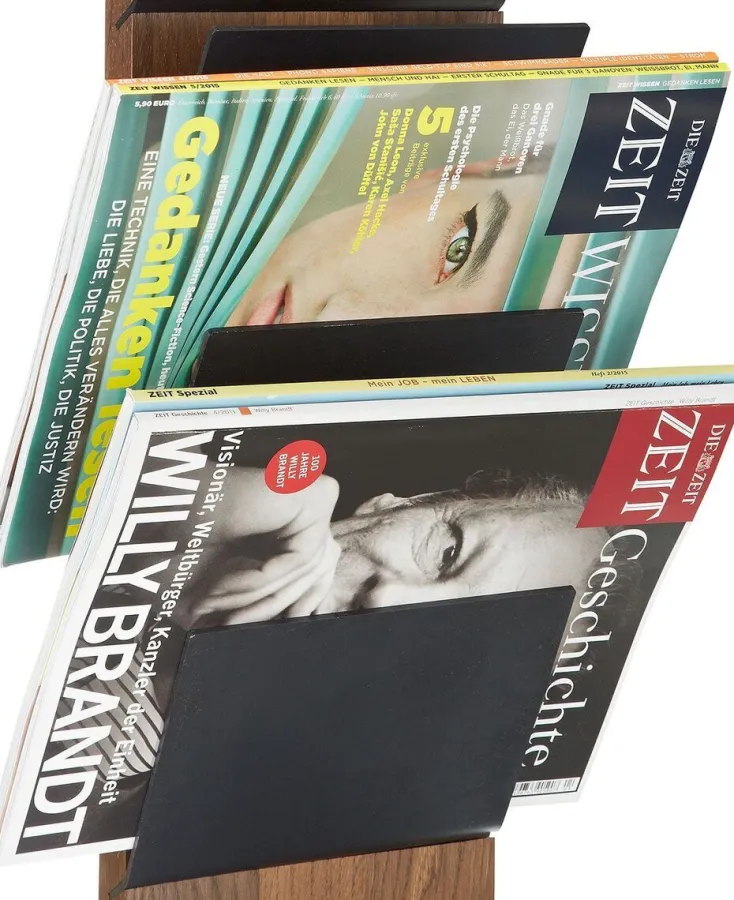 Das in Deutschland handgefertigte Wandregal »Scala« besticht durch seine Schlichtheit und Funktionalität. Die Einlegeböden sind aus geöltem Stahl und variabel einsetzbar: Sie können horizontal angebracht werden, dass Bücher und andere Accessoires optimal platziert werden, oder ebenfalls leicht schräg, sodass die Einlegeböden den optimalen Halt für Ihre Magazine oder Zeitschriften bieten.